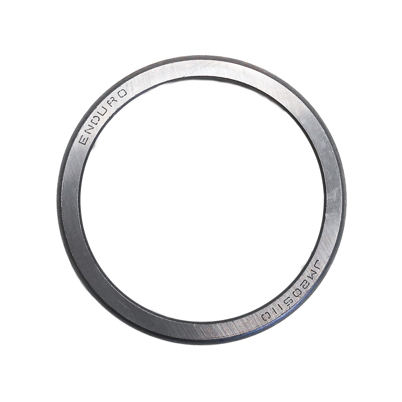 The Enduro JM205110 outer race cup joins with the Enduro JM205159 inner race cone(sold separately) to form a single tapered roller bearing suitable for applications that support both radial and axial loads. Made of high-alloy steel, the single cone is durable, heat tolerant, and resistant to contortion under heavy loads. The rollers are prevented from coming into contact with each other during use because of the stamped steel cage. This reduces friction, vibration, and noise. Because the tapered bearing unit is separable, the single cone assembly allows for lubrication and accurate adjustments.